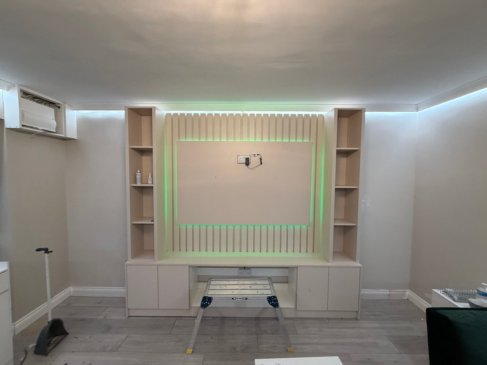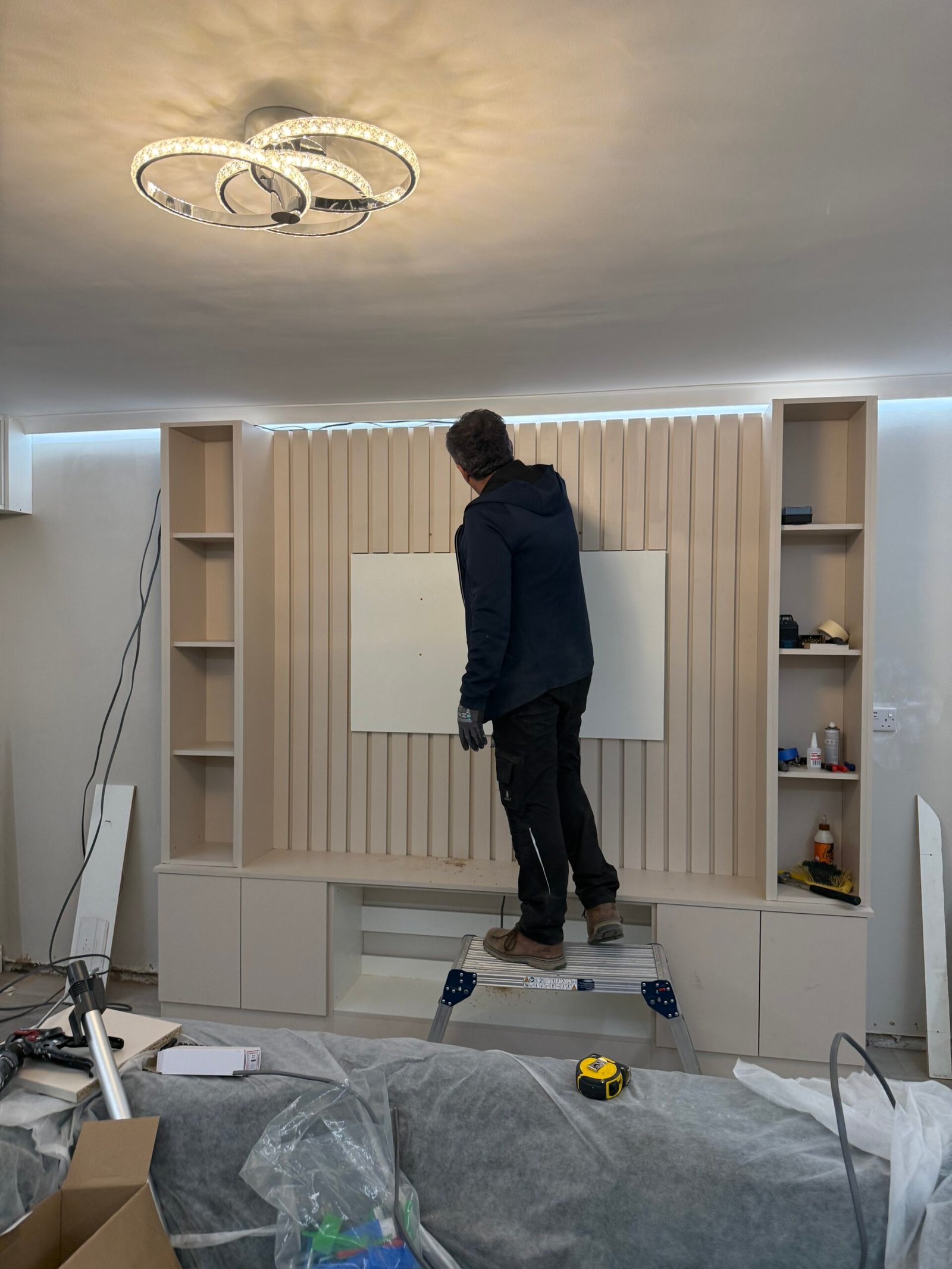 This bespoke media wall project in Birmingham was designed to create a refined focal point within the main living space, seamlessly combining architectural elegance, modern technology, and handcrafted detailing. The objective was to elevate everyday living while maintaining a warm, balanced, and timeless aesthetic.