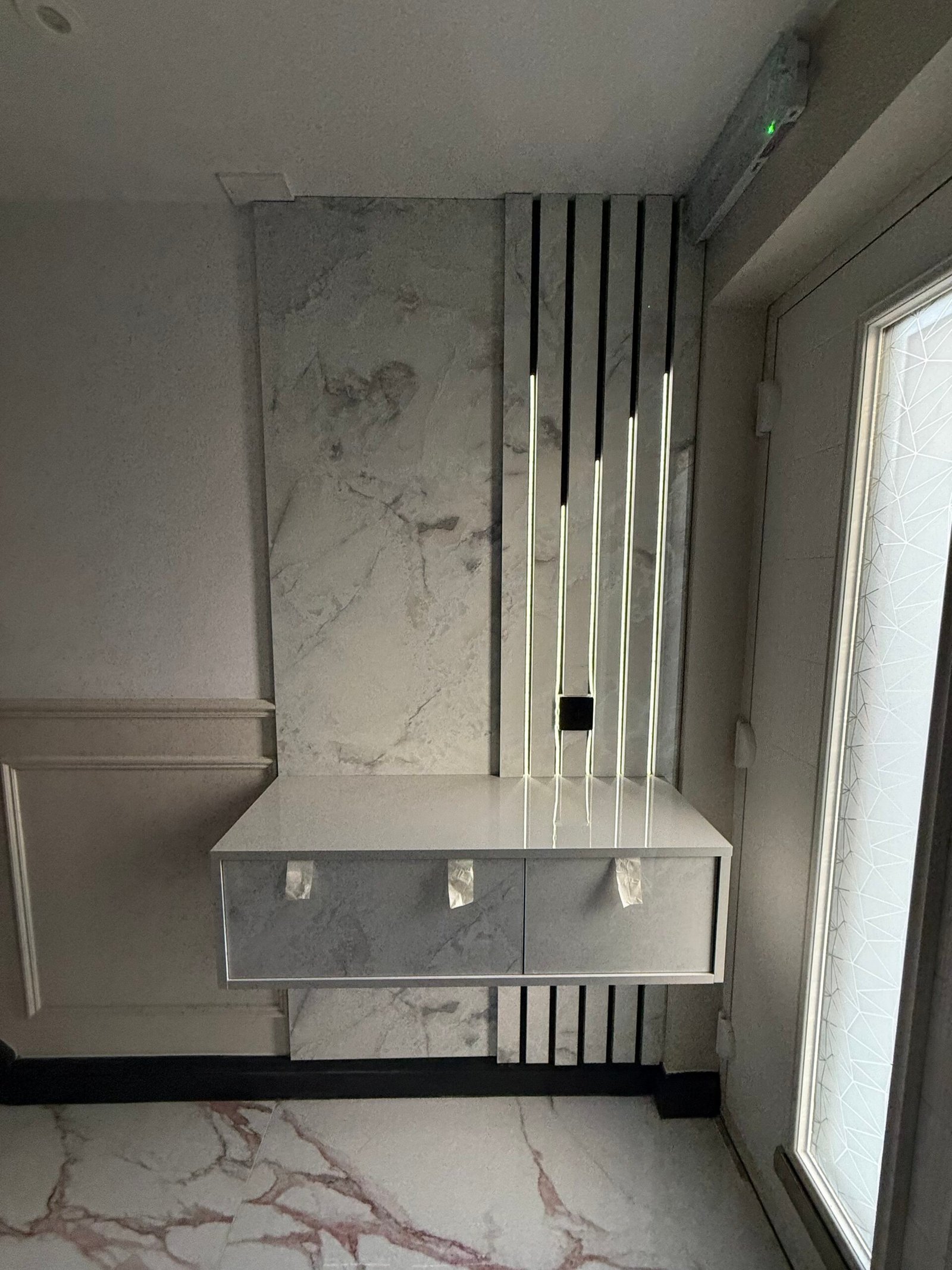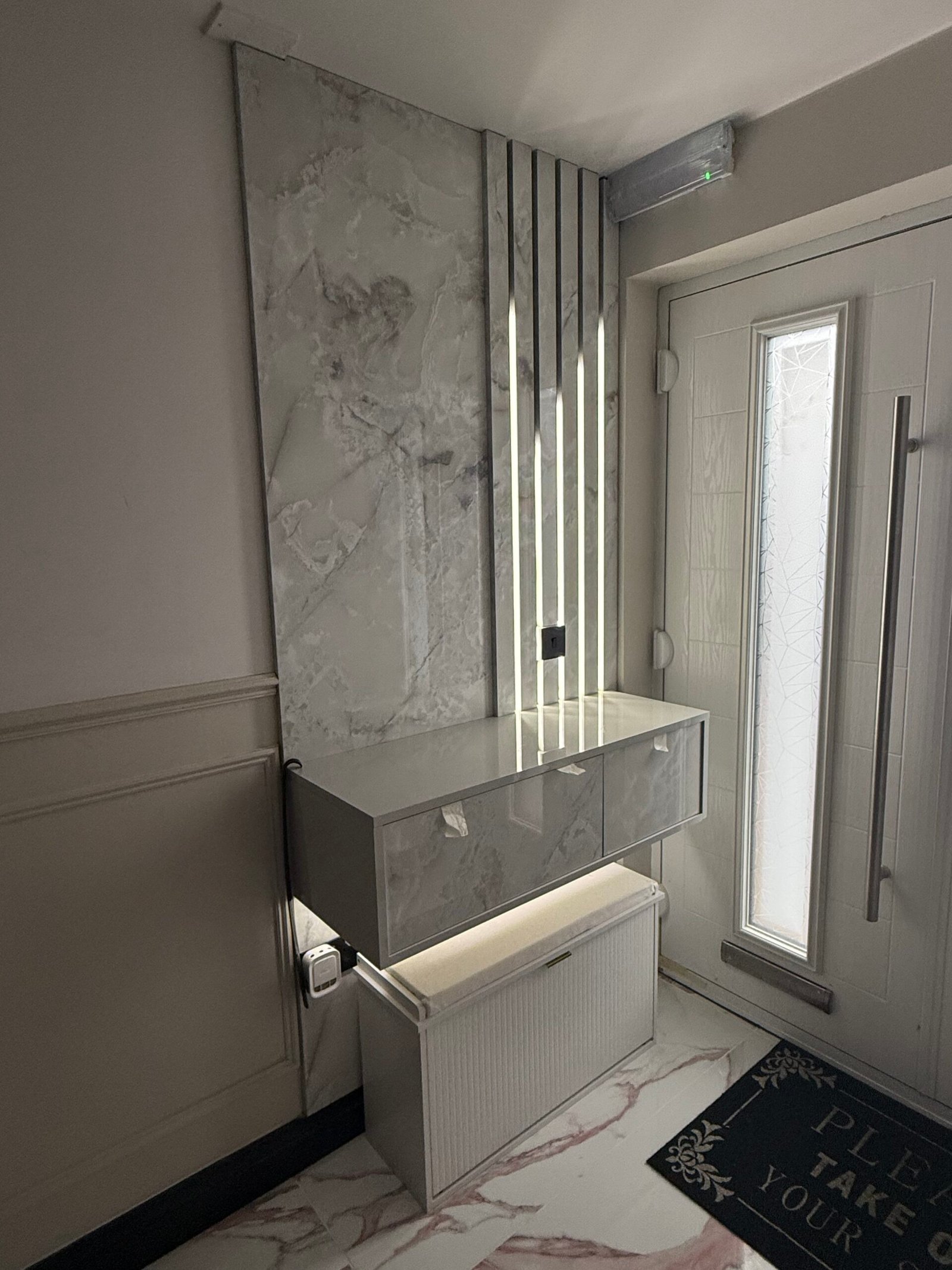 The installation was completed by one of EliteBuild’s senior master carpenters, bringing over 15 years of experience across prestigious residential and commercial projects in the UK and internationally. His precision workmanship and attention to detail are evident throughout the finished entrance.
